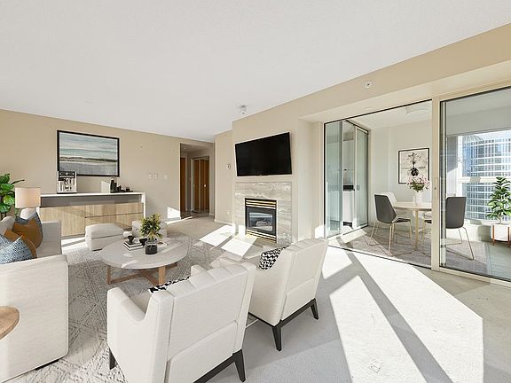 WHAT AN OPPORTUNITY! BRING YOUR PAINT, FLOORING, AND DECORATING IDEAS TO COMPLETE THIS ELEGANT CORNER UNIT AT THE PRESTIGIOUS "TERMINAL CITY CLUB". THE SUITE - windows North/East/South soak in the city skyline + Burrard Inlet from this stylish home in the sky. Generous room sizes + high end kitchen/bathroom finishings are ready to shine again with the right vision + minimal expense. Spacious principal rooms. Gas fireplace/cooktop. Granite/marble counters. Laundry room. Corner windows maximize enjoyment of the views. THE BUILDING - exclusive club/hotel/condo hybrid offering unparalleled lifestyle, amenities + convenience in the heart of the business/shopping district Downtown, yet just steps to Sea Wall, Harbour Green Park + Waterfront Station (Canada Line direct to YVR in under 30 mins).