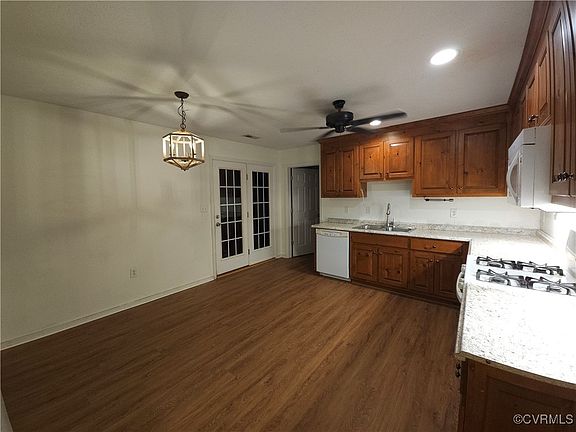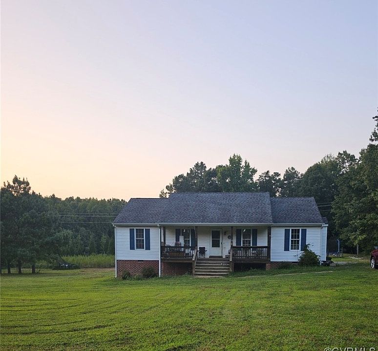 Experience country living at its finest by bringing your chickens and small livestock to this charming 1400 sq. ft. ranch-style home in King and Queen County. The house offers a welcoming covered porch, 3 bedrooms, and 2 full bathrooms on a 2-acre property. It includes a chicken coop with a run, a fenced area for livestock, and a shed. This home boasts new LVP throughout. The spacious eat-in kitchen boasts plenty of cabinets and the new counters offer ample space. French doors open from the kitchen to a back deck that overlooks the backyard. Many new items with more information coming soon!