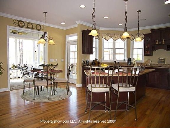 Gorgeous lakefront home w/private dock & dredged cove (7-9 ft. at dock). Elegant, open floorplan. Custom designed kitchen w/double French doors open to screen porch & large deck. Custom oak hardwood floors 1st fl. Over 700 sq. ft. bonus w/gameroom, office area & media w/surround sound. Master suite overlooks lake. French doors to large bath w/jetted shower & whirlpool, his/her closets. Central Sound System, central vac. Natural Stone (hand laid) exterior front & base of home. Covered tile front porch, central vac. Walk-in storage w/poured concrete floor under home. Lake fed sprinkler system & landscaped yard. Dock is one of only a few in the shade early am & late pm. Lots of room for boat. Great location. Golf/Social membership available.