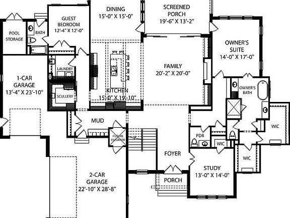- Bookcases, Double Vanity, Entrance Foyer, High Ceilings, Kitchen/Dining Room Combination, Master Downstairs, Separate Shower, Smooth Ceilings, Storage, Walk-In Closet(s), Walk-In Shower, Water Closet