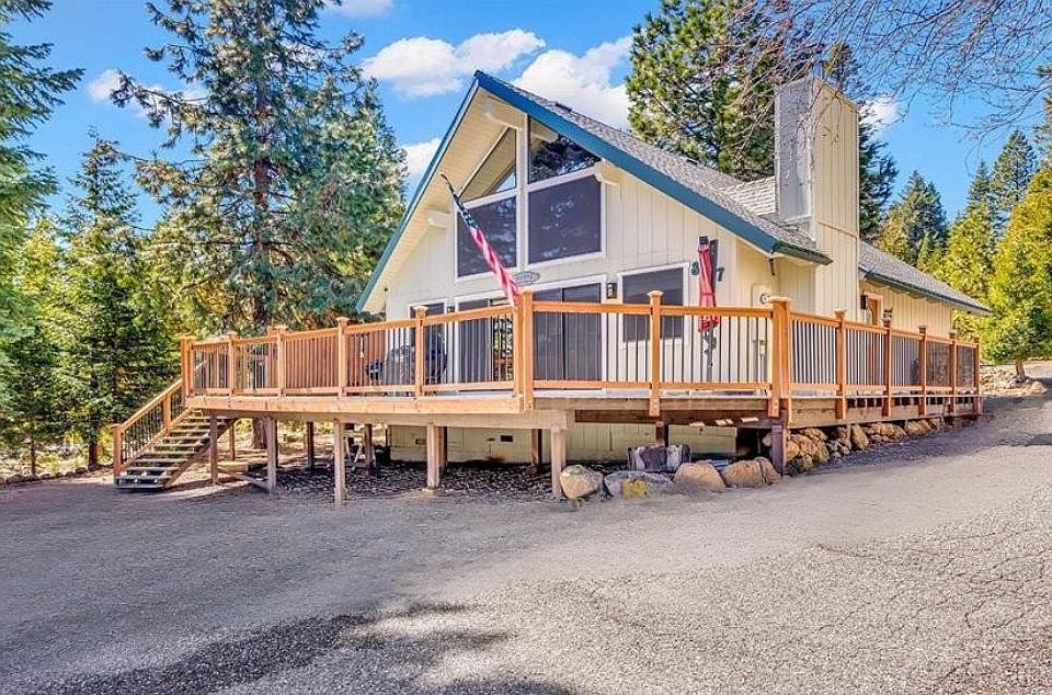 Charming, incredibly clean cabin located in the desirable Lake Almanor Country Club! This 3-bedroom, 2-bath home sits on a flat lot with ample parking, perfect for guests and family gatherings. Enjoy warm summer nights on the spacious deck, ideal for entertaining. Inside, the home boasts vaulted wood ceilings and beautiful wood flooring throughout. The kitchen is a chef’s dream with granite countertops, updated appliances, and an open layout that seamlessly connects to the rest of the main level. New heating system and woodstove. A perfect blend of cozy comfort and modern updates!