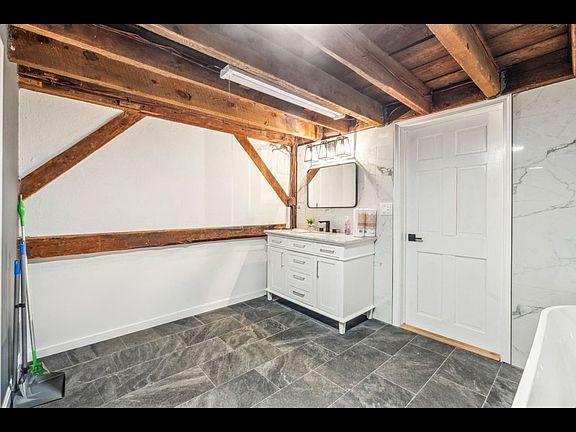 New bathroom. Central heating and air conditioning. Open concept style living room plenty of room for storage in basement and walk up attic. You can run a business out of the barn as well. Tenant is responsible for electric, propane, WiFi and trash removal. Owner takes care of grass cutting. Snow removal is to be discussed. There is an attached house that will be rented separately. Barn has plenty of parking in front and rear.