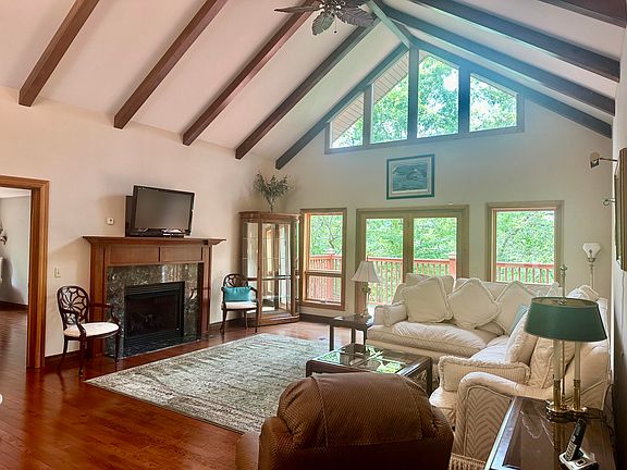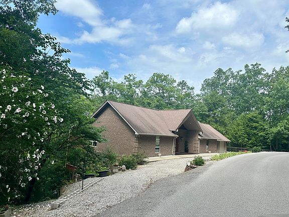 Beautiful Brick Ranch Lakefront Home on Wood Creek Lake in London KY. Nice home host fully finished walk-out basement, Private covered dock, huge double covered porches and decks overlook lake. Nestled on 2 mainly wooded lots with 210 feet lake frontage. lots 5&6 Steps to lake have multiple landings with benches to be among nature. Great Room with vaulted ceiling and wood beams make a statement as you enter the home,huge room 31 x 18, Propane fireplaces in great room and family room. Beautiful hardwood flooring and tile on main level. Lots of natural light grace this home with multiple doors overlooking back porch and lake. Kitchen with island with stools and granite countertops, tons of beautiful wood cabinetry, wall oven, microwave, dishwasher, refrigerator with room for huge dining table. Primary Bedroom is on main level with deck access, has full bath with jetted tub, walk in shower & double sinks. Double closets. Main level has half bath, laundry room,Deep 2 car garage. Home is handicap accessible with stairlift to lower level with vinyl wood look floors. Family Room, 3 bedrooms and full bath with tub shower. Huge decks and porches. Storm shelter Sold as is ,security system