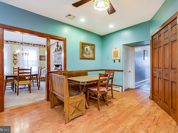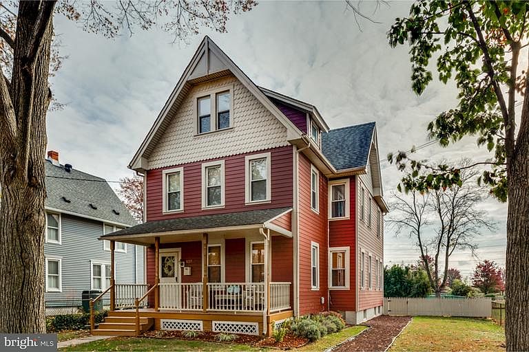 This historic colonial is one of the nicest homes in Delanco! Its one of the few homes with a double lot that goes from one street to another. The outside of the home was updated with Hardy Plank siding for low maintenance and has a newer roof. The front porch has new railings and wood decking. As you enter into the home you see the beautiful wooden staircase untouched from years ago. The wood is just beautiful! The hallway has a window to let in the natural light. The large living room is like two rooms one section currently being used as an office. The large eat in kitchen has beautiful wooden oak style cabinets. There is a large corner double sink with a window to look out. The large double door pantry is great for food storage. The refrigerator, gas range, microwave and dishwasher are included. Just off the kitchen is a large dining room with an entrance in to the living room. Three windows also let in the natural light. Off the kitchen is a large laundry room and a updated half bath. Up stairs on the second floor there is 4 bedrooms that includes the master bedroom which has a walk in/double door closet. A full bathroom with a tub/shower, toilet, closet area is also on the second floor. The third floor has a large bedroom and also attic storage area. Outside in the back yard there is a detached garage that has a finished entertainment room and a oversized one car garage. The property is all fenced in and has a driveway from the rear of the property to the garage. Many good parties were held on the property as the back yard is very spacious with entrances from the front and rear. The full basement could be finished for more space if you need it. The current owner loved this home when he first went through and you will too!