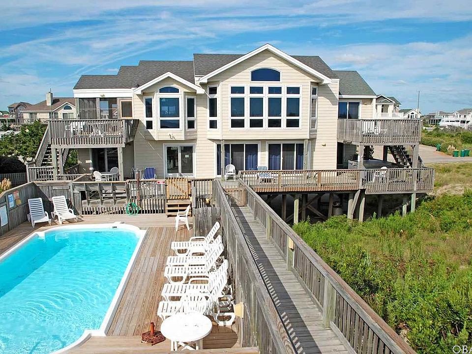 This custom built, well-maintained oceanfront home, located in Whalehead, offers quality craftsmanship, attention to detail, and stunning ocean views, "Home went through a total renovation in 2003". On the upper level, a master bedroom w/private deck, two bedrooms sharing a full hall bath, the spacious greatroom, w/cathedral ceilings & hardwood floors, featuring a living area w/gas fireplace, entertainment center, & floor to ceiling windows looking to the sea, a large dining area, kitchen w/tile floor, granite countertops, & bar seating, and a screened porch w/east & west side sun decks. The middle level offers an entry foyer, rec room w/wet bar, refrigerator, dishwasher, microwave, entertainment center, & deck access, a half bath, laundry room w/washer & dryer, four master bedrooms, three w/deck access, lots of sun & covered decks, a hot tub, fenced deck area w/private pool, and a private walkway to a dune-top deck and uncrowded beach. Recent updates west side of roof replaced in 2015, all sliders replaced 2010, pool deck 2012, L3 HVAC in 2013, new linens, furnishings, carpeting throughout in 2016. Close to shops, restaurants, and the Currituck Club Golf Course.