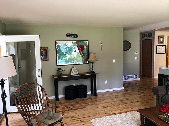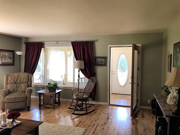 Completely renovated home in ''move-in'' condition. New kitchen with beautiful oak cabinets. Dining room with built-in cabinets overlooks the patio and water feature area with new beautiful hardwood flooring. Main floor master suite features walk-in closet with fully tiled walk-in shower. Sun room off the living area to enjoy all year around. Great family room, abundance of storage, central air, radiant floor heat, sprinkler system, barn, pasture, heated garage, large deer fenced garden & paved road.