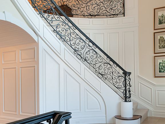 Young, gated, brick and stone estate in a truly private setting just one mile from town. Exceptional custom built home set back on 3+ acres with spectacular outdoor space - infinity pool with spa and water features, expansive patio with outdoor fireplace, pergola and apple orchard. Beautifully designed and expertly executed architecture with the highest quality materials. 10 foot ceilings, showcase white Chef's kitchen with a dramatic two-story breakfast room, exceptional baths and gorgeous millwork throughout. Elevator. 5,000 additional square feet in the walk-out lower level includes a grand bar room, gym, and playroom with fireplace as well as unfinished space. A one of a kind offering.