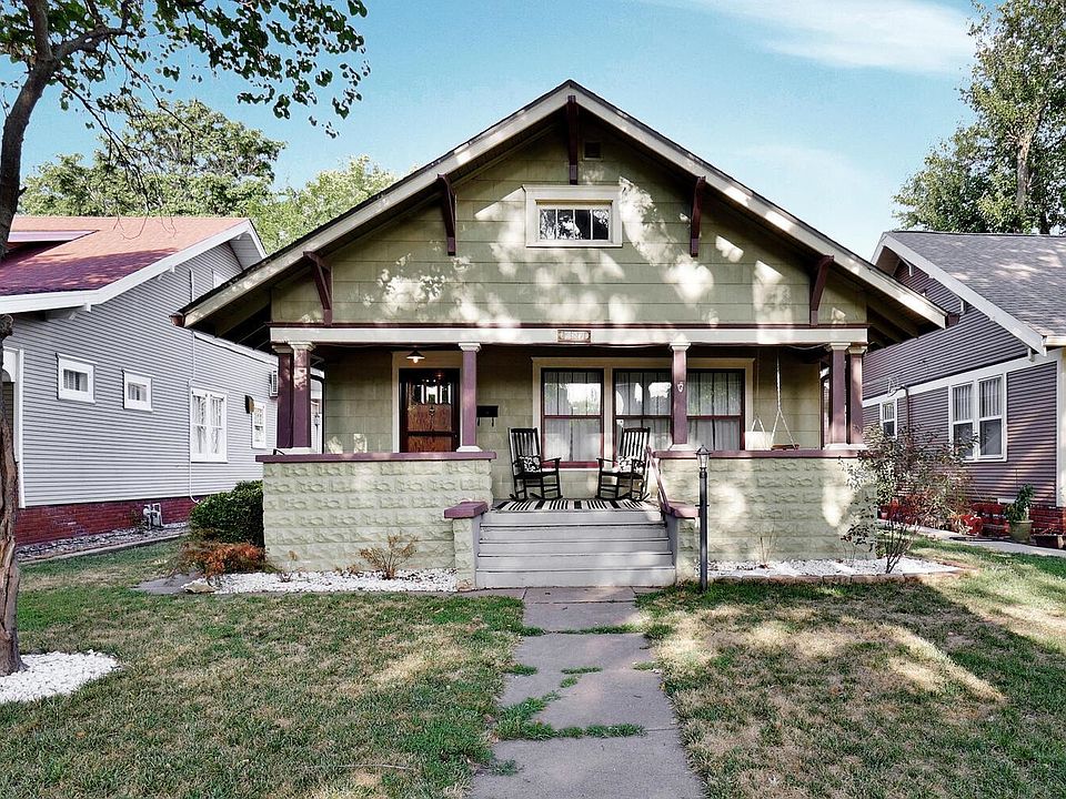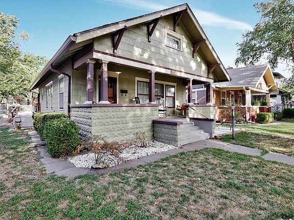 Cute Riverside Bungalow in the heart of Riverside. Covered East facing front porch. Deck off the kitchen, wraps around the south side, to the back yard. 2 bedrooms on main floor, another bedroom or office/studio above attached alley access, garage.New garage door ordered and will be installed prior to closing. Unfinished basement. Living room, dining room and 2 main floor bedrooms have hard wood floors and recently painted in a neutral color. Living room has a decorative fireplace and bookshelves on the North wall. Fireplace considered decorative only. Buyer would need to have a professional evaluate prior to adding gas logs and using it. House is near Riverside Perk, Riverside Park, Riverside Zoo, Arkansas River, bike path, tennis courts, golf course, disc golf course. Move in ready!