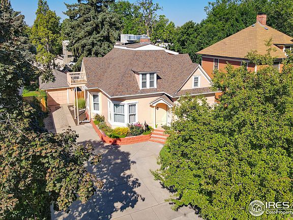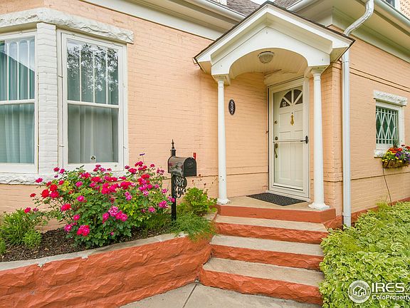On a charming and quiet street in Downtown Loveland, this beautiful Victorian invites you to come in and call it home. The mature landscaping and perennial flower beds burst forth with color. After pulling into the oversized driveway (RV Parking), make your way to the covered front entry into the large foyer, serving as a drop zone and area to greet visiting family and friends. The gray-washed parquet wood floors extend through the French doors leading into the large living room with bay windows and the gas fireplace. The large windows and trim work lead eyes to notice the high ceilings and the large archway separating the living and dining spaces while maintaining an openness between the two rooms. Spacious, the formal dining room is a space to gather, whether over breakfast or with guests during the Holidays. The home's character nods to its history with built-in shelving containing a pass-through to the kitchen where you can whip up old recipes or new favorites in the double ovens while enjoying quick cleanup over a classic drainboard sink. Tall cabinets provide ample storage. Quickly bring in groceries, passing through the all-season sunroom to the garage. The main level boasts more to enjoy, including a large bedroom with a walk-in closet next to the full bathroom with a clawfoot tub and shower combo and an oversized built-in linen closet. A large laundry room has a sink and fold-out ironing board. A fun and bright second bedroom currently used as an office and half bath complete the main level. Retreat upstairs to the family room serving as a multi-use space. A fully remodeled bathroom with a deep soaking tub and separate shower is shared between two additional large bedrooms with walk-in closets. One bedroom has a private balcony while the other has a vaulted ceiling and overlooks the private and large yard. Enjoy the big backyard from the large deck. Additional storage is found in the large shed that might be your perfect she shed or a tool shed!