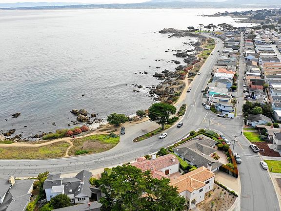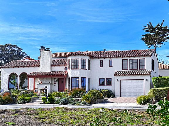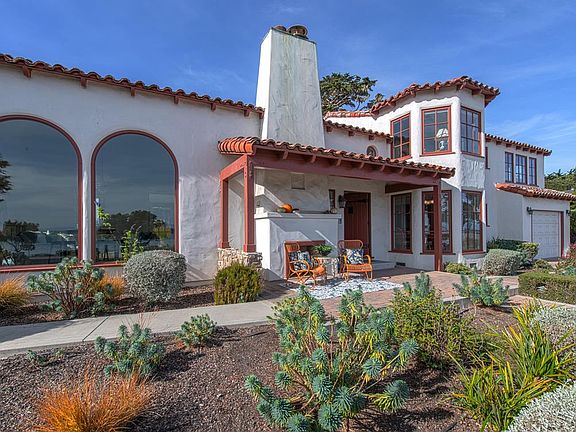 An icon of classic 1920's Spanish architecture this landmark home with the outdoor fireplace on Ocean View Blvd, was carefully re-constructed in 2010 to retain its look of old while being nearly new within and without. Sited just a couple of blocks from Lover's Point and orientated to capture the sunrise and then the glow of the sunset on the hills across the bay, the view in between is a never ending procession of boats and ships, waves and currents, birds and sea life. Featuring a large great room living area with soaring ceilings and tall windows, a spacious dining and kitchen with ocean views, two generous sized bedrooms downstairs and a master suite with a sitting room overlooking the shore upstairs, this comfortable, warm and light home is a delight.