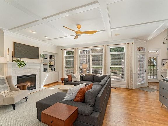 Welcome to this exceptional 5-bed, 4.5-bath brick home with an oversized 3-car garage in prestigious Brookberry Farm. Spanning over 3,900 sq. ft., it blends elegance, modern design, and luxury. The updated chef’s kitchen boasts high-end wood cabinets and quartz countertops, flowing into a bright living area with floor-to-ceiling windows. Hardwood floors add warmth and sophistication throughout. The main-level master suite features dual walk-in closets, a spa-like bath with quartz counters, dual sinks, and a jacuzzi tub. Upstairs, three spacious bedrooms and two full baths provide comfort and privacy. The finished walk-out basement, currently a golf simulator and playroom, includes a bedroom and full bath—ideal for guests. Brookberry Farm offers world-class amenities: clubhouse, event barn, pool, gym, playground, and amphitheater. With 10-foot ceilings, updated fixtures, and refined craftsmanship, this home epitomizes luxury living.