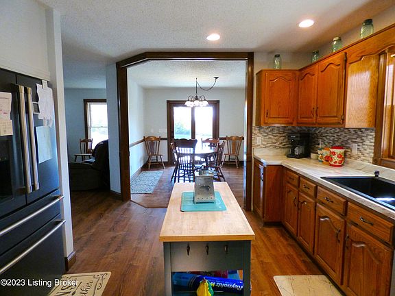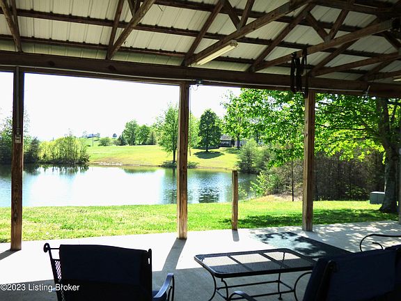 Beautiful home with a New Roof as of 3/14/23 on 7+ acres and a shared pond! approximately 30 minutes to the new Ford Battery Plant being built in Glendale KY. This one and half story, 2400+ SQFT home has 2-First Floor Primary Bedrooms and bath suites, along with huge walk in-closets. Appliances will remain in the updated kitchen with a warm Farmhouse feel. The dining room and kitchen wall was removed creating a large country kitchen leading to a wraparound covered porch and 36x24 covered patio overlooking the fishing pond. New Flooring through the home with original hardwood floors in the dining area. You'll appreciate the 2-detached garages! There is a large 2.5 car garage behind the house and a larger second garage that is 30x40, w/ drive through bay, workshop. New HVAC system ... New Heating & Air Systems with a Reme-Halo Light Air Purification system and media filter. The crawl space has been encapsulated and insulated with spray foam for better climate control. Underground utilities.