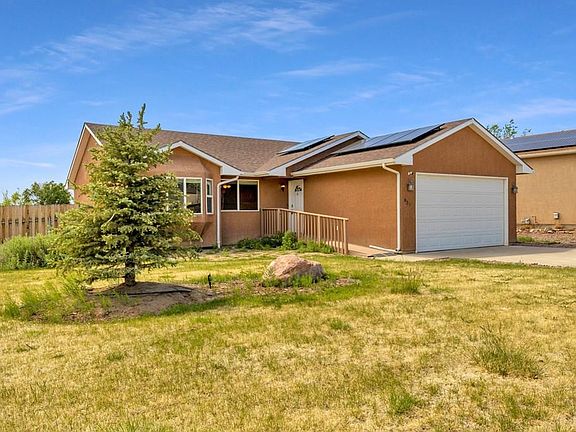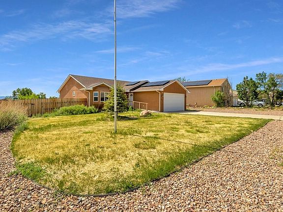 Would you like to have one level living? well this is the home for you! This home is move-in ready! Offering 3 bedrooms, 2 baths, 2 car garage with 1411 square feet on one level! Sitting on over 1/4 of an acre with front yard landscaping, fenced back yard with an enormous deck to enjoy the sunsets from! The kitchen offers tile flooring, vaulted ceilings in the kitchen and living room. Split floor plan with the primary bedroom having its privacy with a 5 piece primary bathroom and access to the laundry room. The solar panels system will be paid off at closing! This is the home for you! Close to shopping, schools and convenient to commute to Colorado Springs.