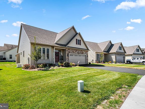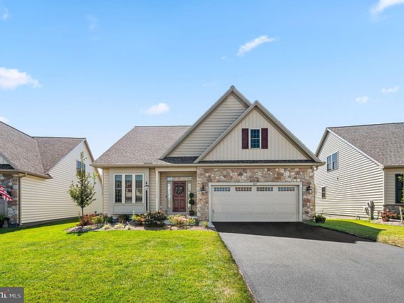 AVAILABLE IMMEDIATELY! Come check out this beautiful, immaculate single family home in the most desirable 55+ community in Cochranville, PA! This gorgeous 1 year old home features: 3 spacious bedrooms, 2 full baths, and a gourmet kitchen with timeless quartz countertops, designer backsplash, and upgraded appliance and cabinet packages. A large open floor plan connects the kitchen to the dining area and spacious living room with direct vent gas fireplace with slate surround and handsome wood mantle. The living space of this home is conveniently located all on the main floor, which also includes a large primary bedroom suite with stunning primary bath with 60 inch glass shower door and an upgraded 42 inch vanity, a hall bath with upgraded 36 inch vanity, a spacious second bedroom, and a third bedroom with French doors that could also be used as an office/den. The home features a massive unfinished basement with bathroom rough-in ready to be tastefully designed, a large 10' x 15' deck off the living room, and an elegant, updated laundry room. The attached 2 car garage has just been fully drywalled, insulated, and painted, and includes a new decorative epoxied floor. Finally, the home showcases sophisticated wide plank luxury vinyl flooring, abundant recessed lighting, central air, plenty of storage space, ceiling fan, a 7 KW backup generator with automatic transfer, landscape lighting, NEST thermostat, ring alarm system, and more! The property is located in the perfect spot within this charming community, which also comes with a clubhouse, pool, gym, and hot tub! Schedule your showing today!