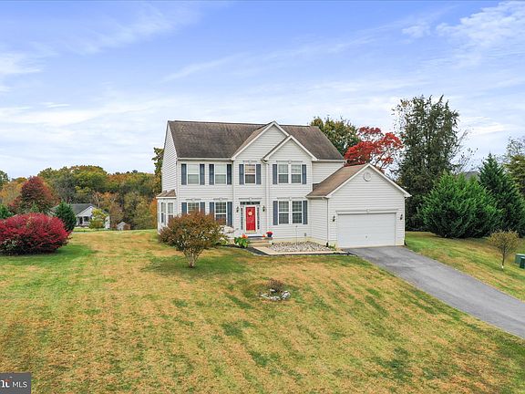 Welcome home to 837 Triumphant Way, Falling Waters, Wv. A stunning colonial featuring most of the must haves and most of the updates with access to the Potomac river in a Highly sought after neighborhood. The sellers have maintained EXCELLENT condition of this home, very clean and ready for its new owner(s) Pull into the 2 car garage, walkthrough the laundry mud room, kick off those shoes and feel at Home. A waltz right into the large open 9 ft ceilings, kitchen, family, and sunroom is sure to do it for you. The kitchen has all newer Black Stainless-steel appliances including a double convection oven, recess lighting, large island, plenty of cabinetry, and breakfast bar area an all-around perfect size to host those Holiday gatherings this year and many to come. Beautifully lit with natural light the whole way around and each window has its own custom vinyl blinds. The sunroom is can be used as a dining area but you can do with whatever you heart desires & off of that room leads you out to the relaxing approx 800 sqft patio area with a large flat yard stretching as far back as you can see to the road. Nice right? Septic was pumped & inspected by Dunhams just 6 months ago. Off of the open living quarters you'll find the formal dining and living room areas surrounded by Bay windows also bringing in the natural lighting. The main level has newer hardwood floor throughout and large ceramic tiles in the kitchen. There is a office on the main level as well as a half bath. One could use it as a small bedroom if you wish. Walking up to the next level with as you enjoy the spacious openness of the entry ways you'll find 4 bedrooms, a hall bath with double vanities, the Primary Bedroom with vaulted ceilings, recess lighting, walk in closet, and the primary bath which has double vanities, soaking tub, and the separate shower. The basement is fully finished with a half bath and plumbed to add a full tub / shower. This is an excellent space and ready to be used for whatever your heart desires. Maybe even that In - law suite. The utility closet is located down here, and you'll find the new 78 Gallon hot water heater, 5 years young Trane Hvac system (Dual Units) with smart thermostats, sump pumps, Negleys water treatment system. New paint, fixtures and fans throughout. The majority of the houses lights are Philips Wiz smart lights, controlled with an app & has all the fun color changing options. The stools, large formal dining room table and John Deere mower all convey.