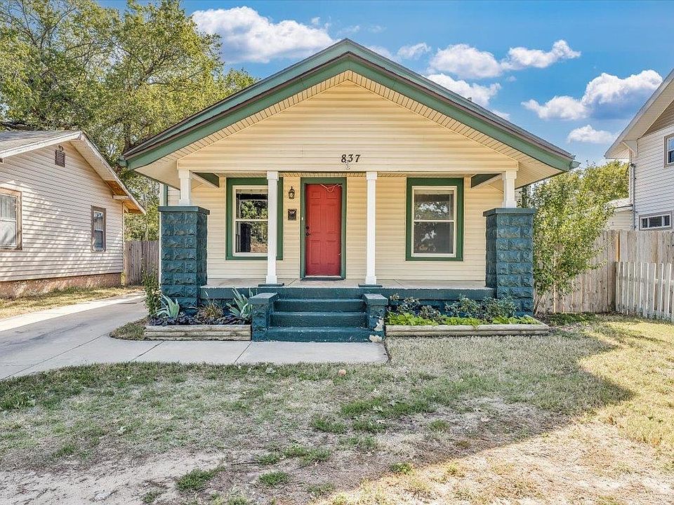 Charming 2-bed, 1-bath bungalow with 3-CAR GARAGE, located in the heart of Wichita. Inside, you'll find an inviting open floor plan with original hardwood flooring in the living room, complemented by updated vinyl windows that flood the space with natural light. The bedrooms and hallway feature new carpet, fresh paint, and high ceilings, creating a cozy and welcoming atmosphere. The kitchen has been upgraded with new white cabinetry, modern countertops, and wood floors. The bathroom has also been tastefully remodeled. The main floor comprises a roomy master bedroom with a built-in closet, a sunny second bedroom, and a dedicated laundry/mud room. The exceptionally clean basement provides ample storage options. The house is in excellent mechanical condition, featuring replacement windows, low-maintenance vinyl siding, a privacy fence, and an extra-wide driveway. The standout feature is the 3-car garage with an extra-deep design and a convenient car lift, a dream come true for any mechanic or car enthusiast. Home offers a convenient location near Kellogg for easy commuting. Don't let this fantastic opportunity slip away—reach out to us today before it's too late!