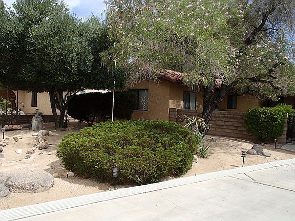 NEW PAINT INSIDE!!A/C ALSO!Quiet location away from traffic!Xeriscape front yard has gated entry to peaceful courtyard.Inside tile look vinyl floor leads thru entry hall to formal living & dining rms:all textured ceilings.Kitchen has granite counters w/antiqued cabinets:all w/ quiet close drawers, pull outs, & amazing pantry w/double fold away storage.Farm house sink looks out to yard thru dual pane pass thru window.Stainless steel mw, '13 smooth top range.Lge indoor laundry w/built in ironing bd! Back to kitchen you will find seating at breakfast bar.Open to spacious carpeted family rm w/ceiling fan & skylite.Full length entertainment center contains china cabinet,wine rack, space for tv,&cupboards &drawers all across the bottom.Fireplace has gas log.Hallway has lots of builtin cabinets & drawers.Fans in all bdrms!Bdrm 4 has pleated shade & open closet.Bdrm 3 laminate blinds.Bdrm 2 used as office.Spacious mstr suite has crown molding& mirrored closet drs.New toilet in mstr bath.Back patio looks out on shady well landscaped yard w/play yard, grassy area.Sideyard has 12x15 shed, RV access & evap cooler & AC on grd.Tile roof.Garage finished w/50 gal. hwh;wk bench,sin