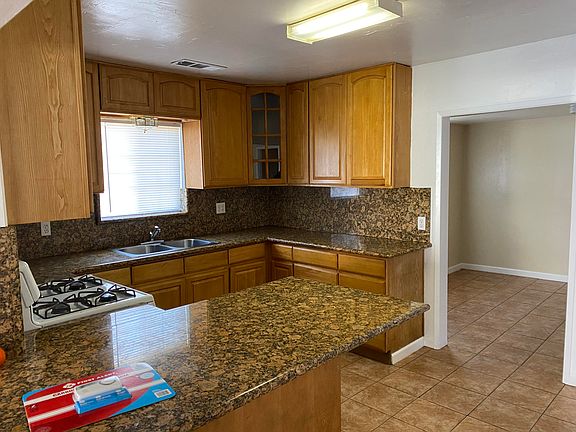 This is a Wonderful 3 bedroom home with tile floors, carpet in the bedrooms, granite counter tops in kitchen and bath, updated cabinets in the kitchen, double pane windows, new paint inside and some outside, on a good size fenced lot with alley access, has central heating and air and a water cooler as well. There is an extra room behind kitchen that can be dining room or whatever you want.