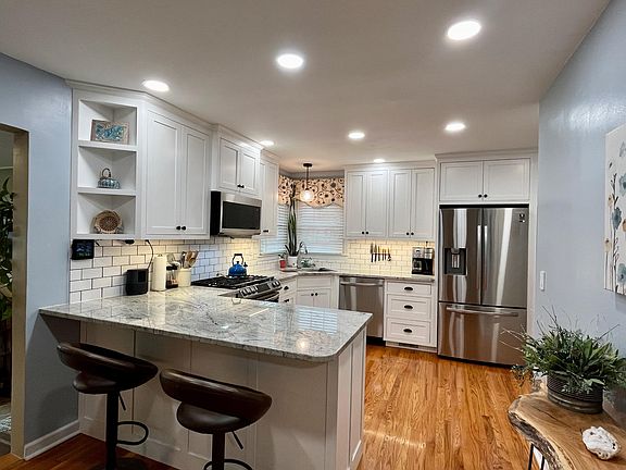 Gorgeous kitchen with newer stainless steel appliances, lighted pantry, granite countertops, with loads of custom cabinetry. Living room has newer windows that let allows the morning sun shine in. Beautiful hardwood floors though out the home. Both full baths are updated and spacious with tile flooring. 2 cozy bedrooms down stairs, one large upstairs bedroom would be perfect for kids to have a play area also. Dining area has a large windows and could be used as a living/dining area. Huge walk-in closet in the basement. Basement has a large workshop/crafting area and laundry area. Plenty of closets/storage throughout the home.Fenced in backyard for privacy while setting on the deck enjoying your morning coffee. Enjoy the landscaping or add a small garden in the landscape boxed areas. 2 car garage has new blacktop in front of garage and 3 off street parking accessed from a paved alley. Garage has pull down stairs for extra storage in the overhead attic area. New roof on home and garage, as well as newer windows. Don't miss out on this beautiful home! Showings begin 5/1/25