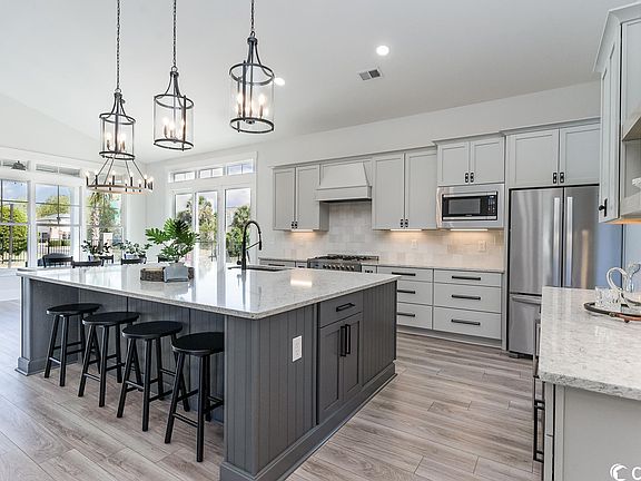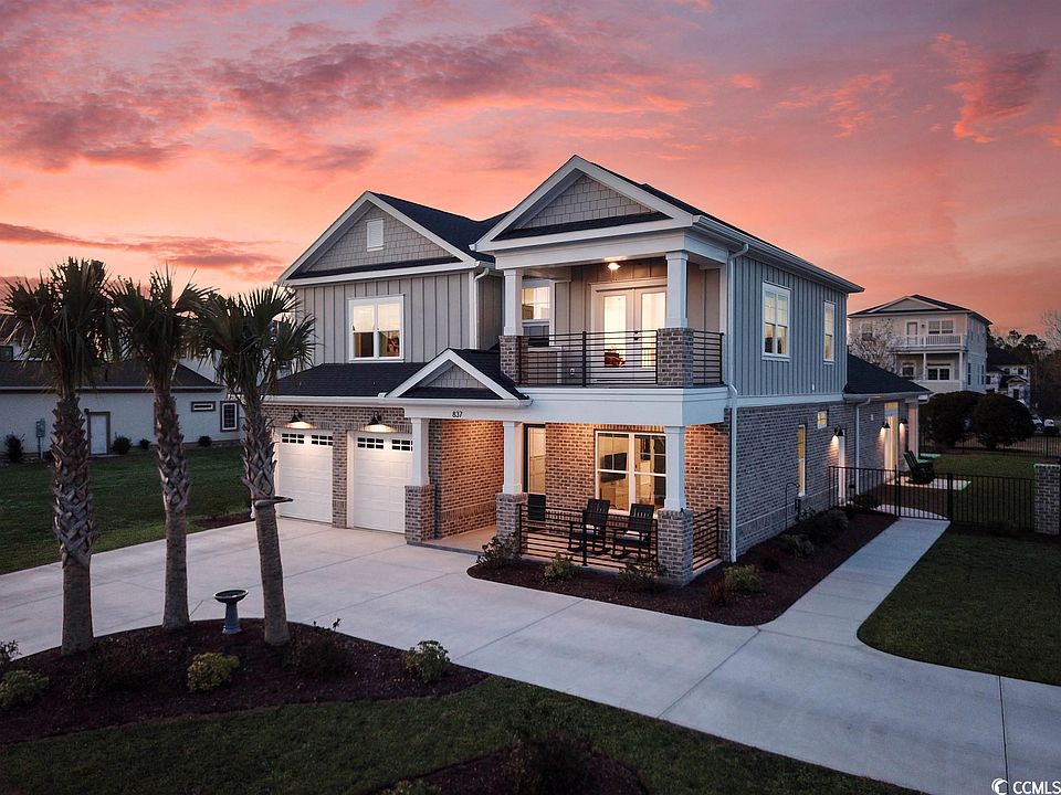 Stunning Modern Craftsman oasis in sought after Carolina Waterway Plantation! This luxurious and meticulously maintained 5BD/3.5BA custom home with private saltwater pool is situated on a corner lot with horseshoe driveway, 2nd row from the ICW, and loaded with upgrades! Its airy and inviting layout is an entertainer's dream and sure to impress. Enjoy indoor/outdoor living at its finest from the gourmet kitchen with oversized quartz island, gas range, and Pro Series appliances to the expansive covered rear porch and custom paver patio overlooking the fenced backyard paradise. Savor your morning coffee from the incredible rocking chair front porch or watch the boats pass by from the Trex-style 2nd floor balcony with waterway views. When it's time to unwind, head inside to the spacious living room flanked by floor to ceiling slider windows, a stately brick fireplace with custom mantel, and vaulted ceiling. Or retreat to the private and luxurious 1st floor Master and Guest suites with sleek custom tiled showers and generous walk in closets. Ascend the exquisite staircase to find a vast and versatile second floor flex space overlooking the ICW, two additional bedrooms, and full bathroom. Additional upgrades in the home include: Modern LED lighting and fan package, impressive 9ft doors, shiplap accents, custom window treatments, tankless hot water heater, smart Wi-Fi controlled thermostats, irrigation system, and more. This gated private community features a clubhouse, swimming pool, sport courts, playground, RV/boat storage, and boat launch ramp. Top-rated schools, 5 minutes to shopping and dining, 10 minutes to the airport, and 15 minutes to the beach.