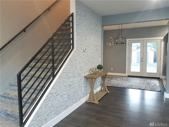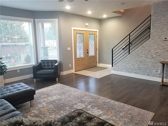 Modern 4 bed/ 2.5 bath Home! Beautiful entrance welcomes you with a show stopper feature wall w/all natural stone. Modern custom metal staircase rail. Gorgeous bright kitchen with all whirlpool stainless steel appliances, granite counters & custom granite backsplash. Large master, w/ walk in closet, master ensuite with a jetted tub surrounded by beautiful tile work all around. French doors lead to a covered back deck with mountain views all around! Two Sheds for Extra Storage & lots of space to park an RV. Natural stone work done on the front of the house. Close to the Canadian Border, Silver Lake, Mnt. Baker & Bellingham.