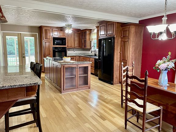 Granite countertops, lots of counter space for someone whom likes to be in the kitchen. Covered patio, detached garage with attached shed for animals, pond. Home totally remodeled in 2005. Beautiful country paradise. One room in basement could be used as bedroom.