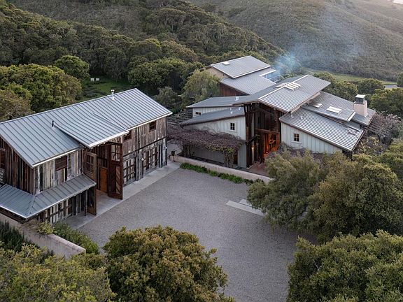 Commissioned and featured by Sunset Magazine as a true architectural marvel, The Sunset Magazine Idea House flawlessly blends its inspiration from Steinbeck Country's rustic roots with a luxurious modern style designed by Thomas Bateman Hood to perfectly frame the incredible ocean and mountain views. Located on ~1.75 acres within Monterra's prestigious gated community, the property is available for the first time since the original owners purchased it. It includes 3 main structures and integrates sustainable design principles and innovative features. Its open-plan layout utilizes an effortless indoor-outdoor flow, with expansive windows framing the surrounding views of mature oak trees, the Santa Lucia Mountains, and Monterey Bay to the west. Designed for comfort and eco-friendliness, the house incorporates recycled materials such as reclaimed barn wood from a local stagecoach station, energy-efficient systems, and drought-tolerant landscaping. The interior exudes a relaxed yet sophisticated vibe, showcasing contemporary furnishings and artistic touches. Outdoor spaces include a spacious deck, fire pit, pizza oven, built-in BBQ, bocce ball court, producing olive grove, and multiple seating areas nestled between the native plant gardens, encouraging outdoor living.
