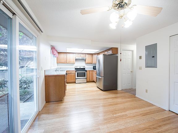 Ground floor entry unit in well maintained Tualatin village. Vaulted living room and skylights add space and light giving the unit a much larger feel. Newer flooring in kitchen/dining area. Newer stainless appliances, granite countertops, newer cabinets. Newer cadet heaters. Nicely shaded private patio. All newer windows. Vacant and move in ready!HOA includes pool and commons area. On busline.