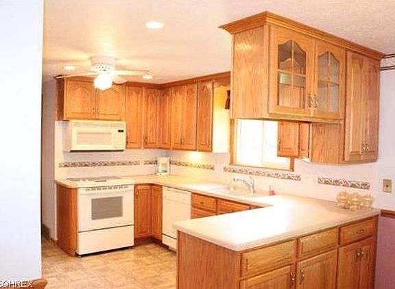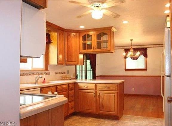 Wonderful 4-bedroom family home on over a acre private lot in convenient location. Updated first floor of home includes solid oak kitchen cabinets with solid surface counters, all appliances, large pantry, under-cabinet and overhead lighting, plus solid oak doors. Nice hardwood floors in living room and dining room, plus hardwood under carpet in all bedrooms. Huge first-floor bath/powder room with counter-top and floor to ceiling cabinets. Kitchen and dining room open to large sun room with 3 walls of glass sliding doors, ceiling fan and steps out to picturesque back yard. Large basement with washer/dryer, sink and plenty of counter space and cabinets. Brand new roof (4/2015), newer premium upgraded steel siding, hot water heater, furnace with Aprilaire humidifier and air cleaner along with updated and newer vinyl windows throughout. Newer concrete driveway with extra parking and turn-around along with large mature trees for added privacy. In close proximity to Akron-Canton Airport (CAK).