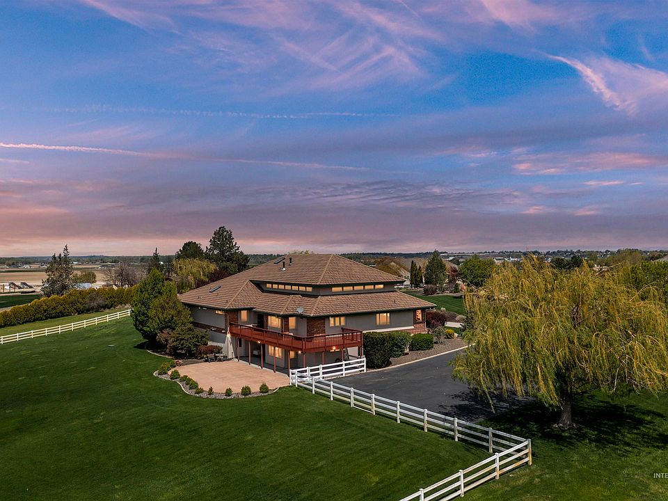 You will fall in love with this exquisite residence at first glance - it may just be time for you to indulge. This stunning 7,000 sq ft. executive home is nestled on nearly 5 sprawling acres perched atop Quail Ridge Estates. The lofty exposed beams bring dimension to the open floor plan and add to the grandeur of this already majestic custom home. With 2 kitchens, a main level owner suite and thoughtfully-designed lower level en-suite, this multi-generational design could be your own private oasis. Featuring upper and lower living rooms each with their own fireplace and additional family rooms, this home will be an entertainers delight. Enjoy breathtaking sunsets and views of the Owhyee Mountains via your walkout basement and wrap-around deck above with the acreage serving as the perfect backdrop for a variety of updates of your choosing: horses, shop, or infinity swimming pool. Come take a tour and experience first-hand why this estate will exceed expectations.