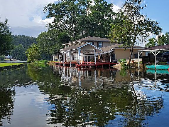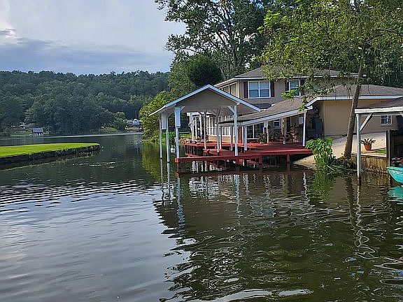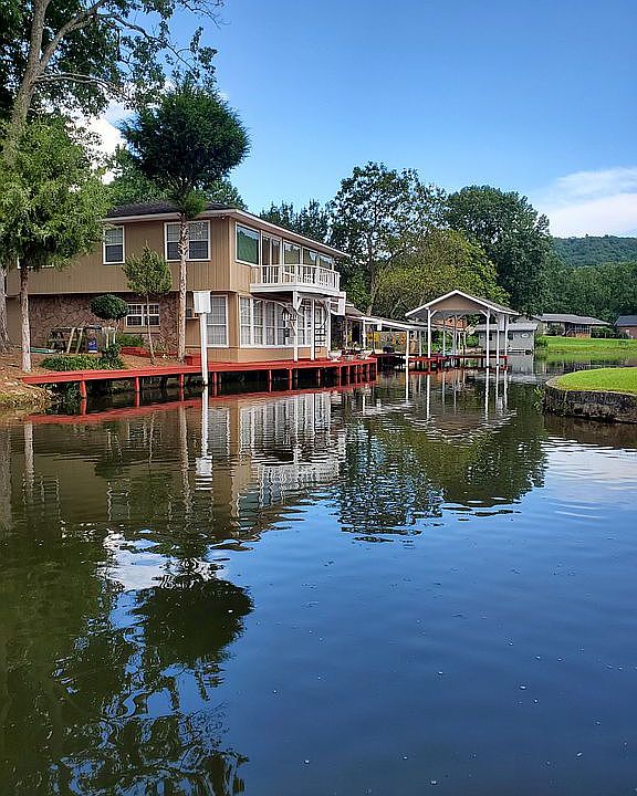 Immaculate, well-maintained, non-smoking, 2-story home on beautiful Emerald Lake. Gorgeous lake views from most all windows! Move-in ready. Previous owner lived here 36 years; current owner since 12/2021. 2,800 sq ft finished, heated/cooled living space. 4 spacious bedrooms with large closets. 2 full baths. Master bath has Jacuzzi/tub/shower combo. Spacious laundry room in main bath. Large living room with thermostatically-controlled gas log fireplace. Separate dining nook. Kitchen has an island with seating. Pantry off kitchen. 2-car garage/workshop. Large covered/open deck/patio, & roughly 100’ dock/walkway with additional 2 covered boat slips. Private boat launch. Living in the Emerald Lake Resort community includes access to the 177-acre lake, use of the community park with walking track, boat launch, pool, tennis courts, and clubhouse.