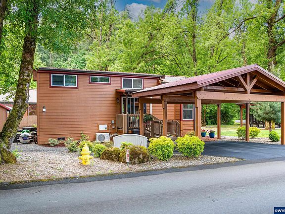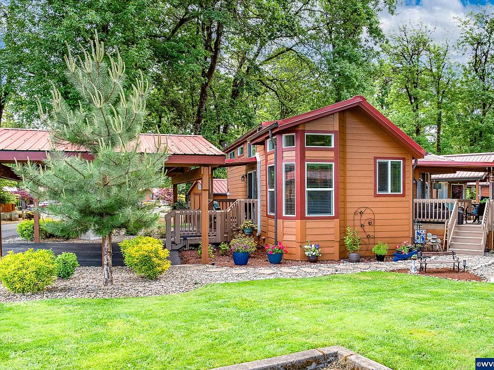 Gorgeous open concept tiny home with add on living room space. Enjoy the covered deck listening to the creek and visiting wildlife! New appliances, fireplace, full size washer and dryer, Hvac system as well as forced air. Bonus shed wired with 50amp for all kinds of extra space ideas. Furnished with inside and outside furniture, propane patio table and chair set with covered umbrella, beautiful landscaping, double carport and so much more! Make an appointment to see today, it won't be on the market long!