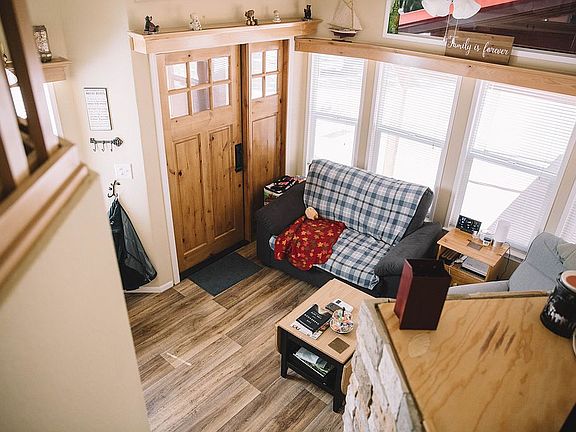 Tiny Home for Sale $139,900.00 Have you ever considered dramatically lowering your cost of living, putting more money in your pocket every month, minimizing your carbon footprint and having more free time at your disposal? Do you think that a $30.00 per month electric bill sounds good? Consider these amenities: -A Tankless on-demand gas water heater that provides instant and unlimited hot water. -Mudroom entry way with custom Rogue Valley knotty alder door. -3 car parking, (2 covered) right in front of your home for security and convenience. -12 foot high vaulted ceilings with fans in both the Livingroom and Bedroom that creates a very spacious, expansive and open feeling. -A Gas Fireplace, very cozy during those cool days and nights. -The Ductless Mini-Split Air Conditioner/Heat Pump provides whole house heating & cooling and eliminates floor air ducts that blow dirty, unhealthy air into a home. -Full Size Residential appliances will include; -G.E Full Size 27 inch gas washer/dryer stack, quiet, efficient and capable. Most tiny homes with washer/dryers use 24 inch units that are to small to wash comforters, sheets or Xlarge towels. -Whirlpool Refrigerator/Freezer -Whirlpool 4 burner Digital Gas cooktop, oven and broiler. -Whirlpool 1.9 cu ft. over the range microwave accommodates dinner plates and casserole dishes with ease, the built in Sensor Technology automatically tracks cooking progress and adjusts cooking time as needed and it can also be used as a steamer. -A farm style kitchen sink that is designed to accommodate the largest of pans with a multi-function pull down faucet sprayer and built in soap dispenser. -The upstairs loft is set up as an office/media room with a guest bed. The fully adjustable desks and shelves stay with the home and are very comfortable when used in tandem with a X-Rocker style chair. -The Metal roof and cement board siding construction means no exterior maintenance for many years to come. -Private back deck featuring custom made fully adjustable Sunbrella fabric panels. -A low maintenance back yard with a beautiful new paver patio for entertaining. -An 8 x 12 shed with metal roof, for the things you cannot fit in your new Tiny Home! The House is located at the Hope Valley Resort a Tiny Home Community. Which includes a private pond, nature trails, newly surfaced tennis/basketball/pickle ball courts, fitness center, private swimming pool, a large lodge/clubhouse, a dog park, security gated access, on site storage facilities and many other amenities. The small monthly HOA fee includes- water/sewer, trash and did I mention an average monthly cost of $30.00 for electricity! High-speed internet is also readily available. This home shows care of ownership and is easily one of the nicest homes with the largest lots in the whole community. Call for a private showing,