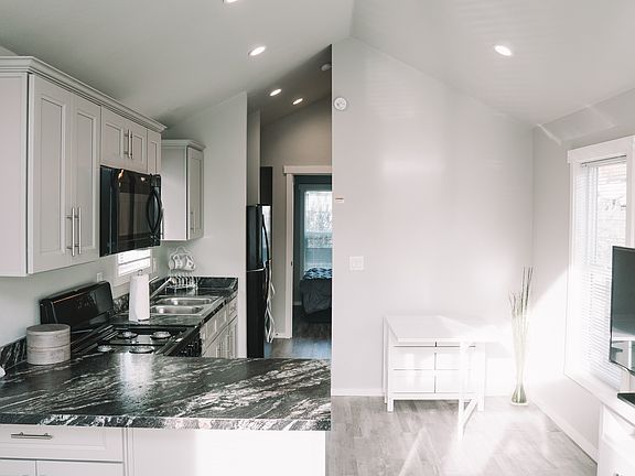 This home is located in the upscale Hope Valley Resort tiny home gated community. Purchase includes paved driveway, storage shed on site, setup, skirting, steps, utility hookups, gutters & downspouts, landscaping, and irrigation.Home Upgrades: Full size Whirlpool appliances, back door, metal roofSite Rent: $500/month, includes basic landscaping, use of all park amenities and buildings, water, sewer, garbage, and recycling.Amenities: Community Lodge, seasonal pool, year-round spa, walking trails, lake with fishing, sports courts with tennis, pickleball and basketball, community garden, and 24/7 access gym.Showing by appointment ONLY. It is a private community; unapproved visitors will not be permitted to drive through.