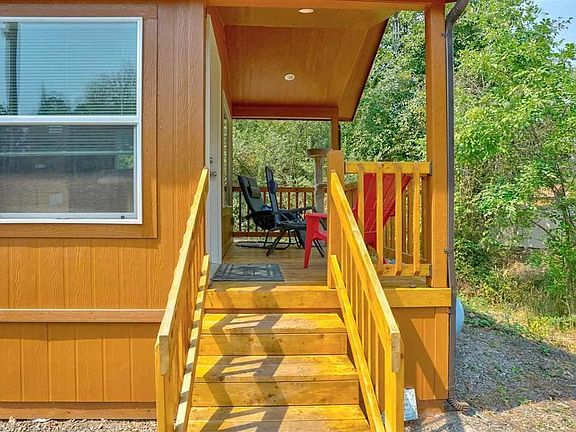 Luxury tiny home! Mountain Views from front deck in front of a creek! Spacious feel w/cathedral ceilings. Kit appliances stay. Pantry/linen closet in hall. Stackable W/D area. BR fits dresser/bed, full size closet. Outdoor living: stocked fishing pond, hiking, pool, hot tub, workout facility, basket/pickle ball, tennis courts & more! All-age tiny home community Hope Valley. Park rent $550/mo incl. water/sewer/garbage/lawn maintenance/all amenities. Turn key living. Home can be expanded in two directions.