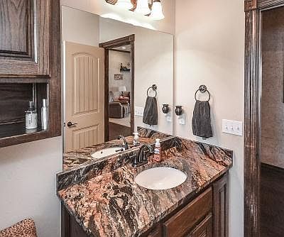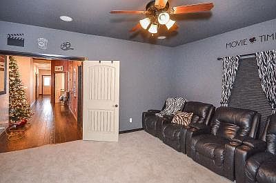 Beautiful brick home with large lake in back of house. Great outdoor entertaining with built in grill, salt water pool, large cover patio overlooking the lake. Inside is gorgeous; open floor plan, tall ceilings , beautiful paint and granite. Kitchen has a large work island, stainless steel appliances, builtin gas cook top, oven, microwave, ice maker, dishwasher and wonderful breakfast bar area. Living room boast a rock fireplace and builtins. This four bed, four bath provides the luxury of all bedrooms with a full bath and walking closet. Master suite is large with outside door, large windows, walking shower, whirlpool tub, double vanities and a wonderful walk in closet. Location is fantastic just minutes from Hwy 62 to get you to Norman or Oklahoma City quick and easy.