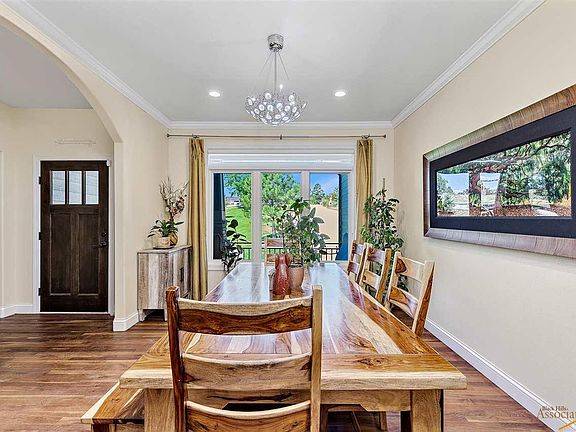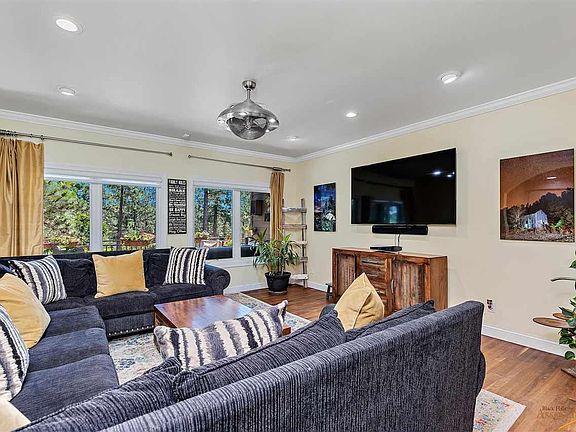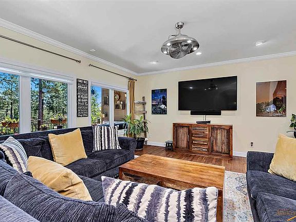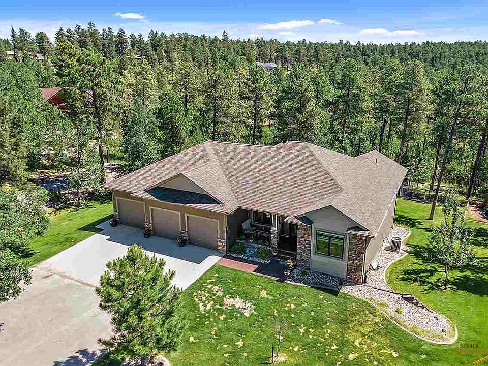 Fall in Love with This Perfect Little Oasis! Meticulously Cared for 4 bed, 3.5 bath ranch style home. Nestled on 2.12 pine covered acres. 20 minutes from Monument Health, Black Hills Energy, & Sheridan Lake. Stamped concrete walkway & entrance. Two master suites on main level with custom built wood shutters. Custom kitchen with large center island granite counter tops & top of the line appliances. 15x11 Sun room off of kitchen, formal dinning area, kitchen, living room all with walnut floors. Master has large tiled shower, separate tub & walk in closet, additional master suite with private bath & walk in closet. Custom built wood stairs. Walkout basement features cozy family room with wood burning fireplace, two large bedrooms, office/exercise room, & storage area. Three car heated garage with 12 ft ceilings and drain boasting a 40' bay. 20x10 out building/garage with concrete floor for shop or storage. Spend evenings on the covered back deck or sharing stories around the firepit .