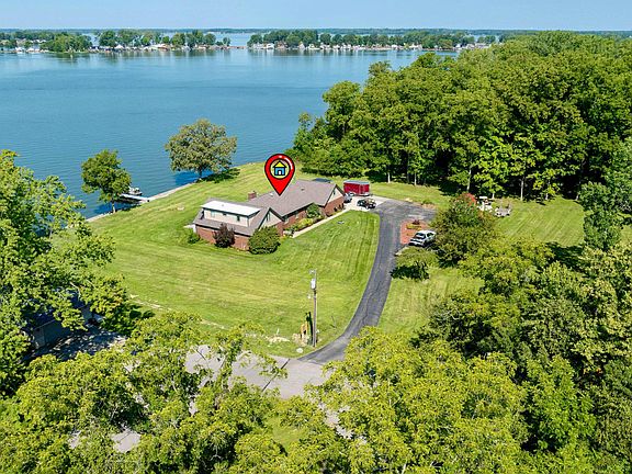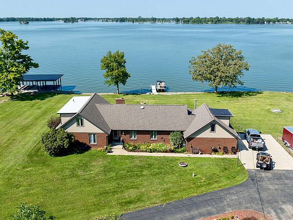 One of the most desirable properties on Indian Lake! Features a partially wooded 1.78-acre lot & 216' feet of waterfront with incredible open water views & fabulous sunsets. The 3147 sq ft brick home boasts 5 beds, 3.5 baths, & a finished loft above the garage for additional living space. Beautiful slate and hardwood flooring throughout. The gourmet kitchen features custom cherry cabinetry, high end stainless-steel appliances, wine fridge, R/O system, granite counters & skylights. The owner's suite has a private sliding door to the waterfront deck & a luxurious en-suite bath with jetted tub, tiled shower, & cedar-lined walk-in closet. Outside you'll find a large composite deck, stone fire ring, newer seawall & removable pier with 2 boat lifts. See this unique property today!