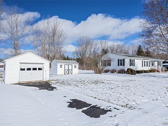 Welcome to 8373 Peachey Road! This 2 Bedroom, 2 Bath mobile home is situated on under an acre. The primary bedroom features an ensuite bathroom with soaker tub, double sinks and separate shower. All appliances (Refrigerator, oven/range, washer, dryer, dishwasher) are included. Off the back entrance and laundry room is a large deck with peaceful setting . There is a detached 2 car garage with electric ,water and heat source. Additional detached 1 car garage and shed as well. This spacious open floorplan home can be yours in the Byron-Bergen School District!