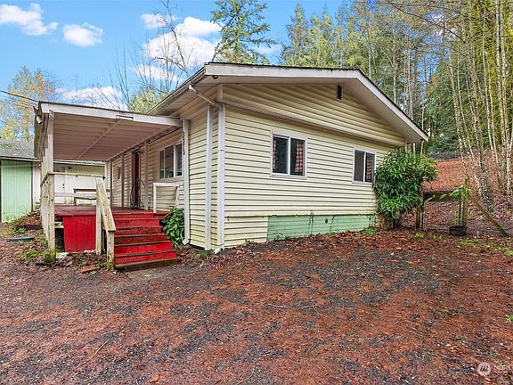 Amazing location! It is a super quiet private road. Just minutes to HWY16 and Southworth Ferry. A quick 30-minute commute to downtown Seattle. Fix it up or tear it down. Choose your adventure. Bring your plans, build your dream home, or fix it and make her shine again. If you want to build the septic, water, and power are ready to go, and there is no need to pay impact fees. Great opportunity for a builder. Fully fenced property. Large 4-car stick-built carport with 11 ft ceilings. Plus, there is an additional 23x25 ft finished bonus room with heat off the carport. Home is 1,110sqft plus 575sqft heated bonus room off carport. The home is virtually staged.