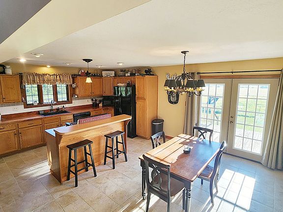A 4-H family's dream! An open-concept, cape cod, situated on a 3.5 acre mini farm. This 3 BR, 2 BA home offers a two-story family room with loft overlooking. The kitchen has newer refrigerator and dishwasher, butcher block countertops, instant hot water dispenser, and an island with space for additional barstool seating. Spacious master bedroom has vaulted ceilings and large walk-in closet. Loft could be utilized as an office or playroom. Partially finished, full walkout basement with rec room (possible 4th BR). Basement is plumbed for additional bathroom. Home features 2 car attached garage. Barn and fenced pasture complete with stalls for livestock, chicken coop, water hydrant, workshop area, and second 200 amp electric service.