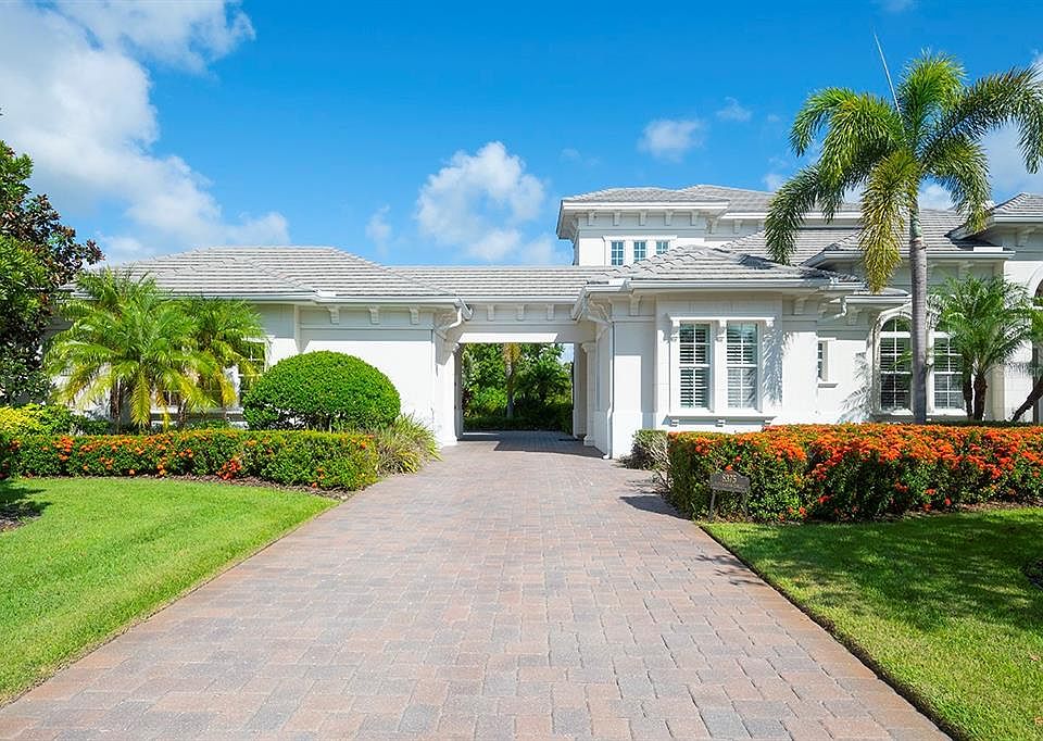 Positioned within The Lake Club neighborhood of Lakewood Ranch, this custom 5 bedroom is surrounded by beauty and grace and offers an unparalleled living experience. Pulling up to the house is a charming experience, enhanced by the detached carriage-style garage. Nestled on a spacious .54-acre lot, the property boasts privacy and stunning views of serene waters and lush, manicured landscaping. The open floor plan seamlessly connects the living spaces with outdoor spaces, creating an inviting atmosphere perfect for both relaxation and entertaining. Custom-designed shelving, fireplace and high-end finishes throughout further elevate the home's refined aesthetic. The master suite serves as a private oasis, featuring a lavish ensuite bathroom and a custom-built closets. The gourmet kitchen is a chef's dream, equipped with state-of-the-art appliances, elegant wood cabinetry, and a convenient walk-in pantry. Adjacent to the kitchen, the dining and living areas provide a seamless flow for hosting gatherings. Outdoor living is equally impressive, with a resort-style pool and spa that beckon you to unwind. The expansive patio is complemented by an outdoor kitchen, ideal for al fresco dining and entertaining. The upstairs loft offers additional versatile living space, complete with a bedroom, bathroom, and a balcony overlooking the pool, perfect for use as a guest suite, home office, or creative studio. Located in the heart of Lakewood Ranch, The Lake Club is a private gated and vibrant community and offers a luxurious clubhouse, multiple swimming pools, fitness center, tennis and pickleball courts, scenic walking trails, playground, basketball, Linear Park, and interlinking lakes for kayaking or fishing. Close to shopping, dining, A-rated schools, parks, and nearby beaches.The Lake Club community grants access to a host of world-class amenities. 8375 Catamaran Circle is ideally situated near upscale shopping, fine dining, and entertainment options, providing a perfect blend of tranquility and convenience. Don't miss your chance to experience the pinnacle of luxury living. Schedule your private tour today!