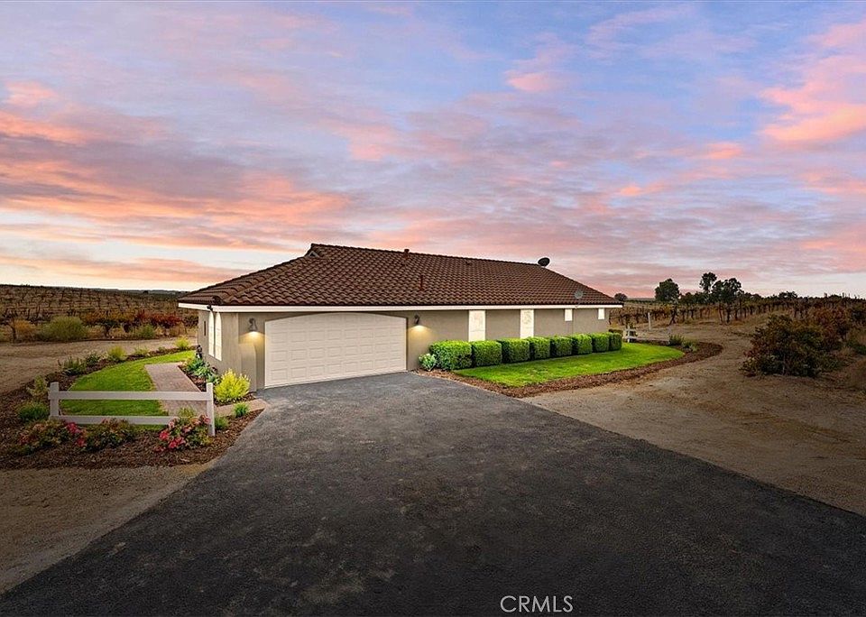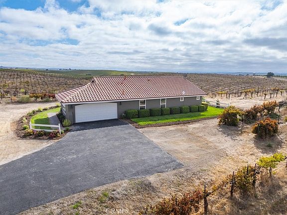 Experience the best of wine country living with this beautifully renovated 1,180± sq.ft. home on 10± acres in San Miguel, highlighted by 9± acres of vineyard and a new private well. Thoughtfully updated with modern finishes, the home showcases new flooring, interior paint, and appliances, creating a stylish and move-in-ready retreat. The open-concept layout connects the living room, dining area, and kitchen with ease, featuring bar seating ideal for casual dining or entertaining. Vaulted ceilings and large picture windows capture the surrounding vineyard landscape, filling the home with natural light and expansive views. The property also includes approved plans and an active permit for an ADU, offering flexibility for future guest accommodations, rental potential, or extended family living. A perfect blend of comfort, functionality, and vineyard charm—this San Miguel estate embodies the essence of relaxed Central Coast living.