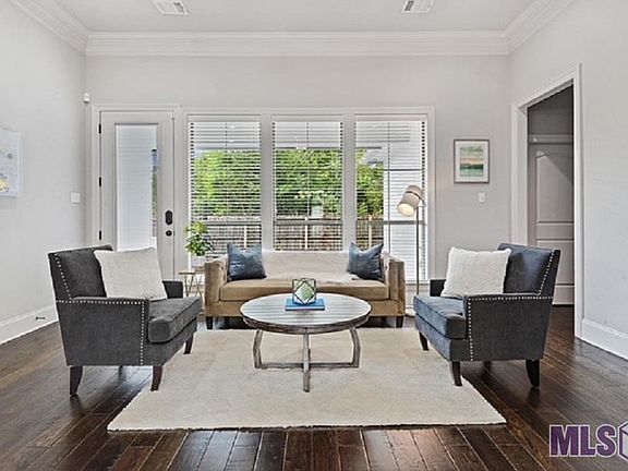 This beautifully maintained property is in a Gated Community at University Villas. This beautiful modern 3bed/2bath contains custom cabinets open concept flooring with 12 ft. ceilings, crown moulding throughout the house.It has SMART HOME AMENITIES INCLUDED WITH THE HOME ARE: a Nest thermostat, Ring doorbell technology, and exterior surveillance camera system. The kitchen has an 8 ft. slab granite island with stainless steel appliances . Two walls of cabinet space and upgraded gas range with griddle. The master bed and bath are split from additional bedrooms for added privacy, and include dual vanities, slab granite counters, a jetted soaker tub, and a large walk in closet. The back lot backs up to a quiet wooded area with an added deck with a shade sail for cover. Neighborhood amenities include a resort style community pool, clubhouse for entertaining, gazebo with fire pit , gated security, 24 hour surveillance, 2 fishing ponds, and 3/4 mile walking trail around the neighborhood lakes. *Structure square footage nor lot dimensions warranted by Realtor.