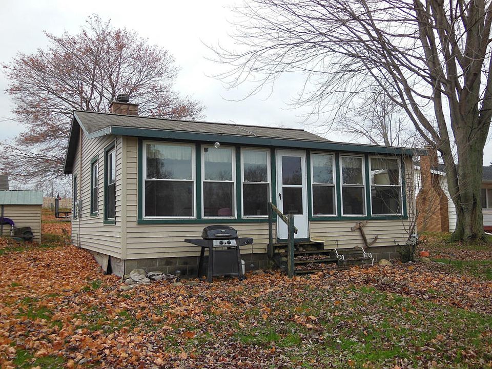 Cute 2 bedroom, 1 bath Lakefront cottage with a cozy stone fireplace, skylight, enclosed front porch, guesthouse and storage shed. Small sandy beach area on all sports Round Lake. Most furnishings are negotiable. Tax amounts may change following a closed transaction.