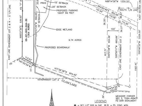 Nestled on 9.75 acres of prime lakefront in Antrim County, this extraordinary Clam Lake land offers 665’ of south-facing shoreline and 617’ of depthâ€â€your private gateway to Michigan’s famed Chain of Lakes. The site has been perk-tested and approved for a three-bedroom home, with natural gas, electric and high-speed Internet all at the paved-road frontage. A welcoming gravel pad affords easy parking for boats, trailers or motorhomes. Stroll down your own permitted 300’ boardwalk to an 80’ dock outfitted with a solar-powered, 7,500 lb boat lift and 70’ of aluminum dock fingers creating four 25’ slipsâ€â€perfect for hosting friends and family on Clam or Torch Lake. This property melds wetland edges with a dry building envelope framed by cedar woods and lake grasses. Clear additional timber to expand your panoramic view, or leave the pines for privacy and wildlife habitat. With municipal utilities at the road and a pristine undeveloped shore, you’ll enjoy both modern convenience and true Northwoods seclusion. A second lot is available to the west of this to make the largest lot on clam lake Seller is a licensed REALTOR in the State of MI