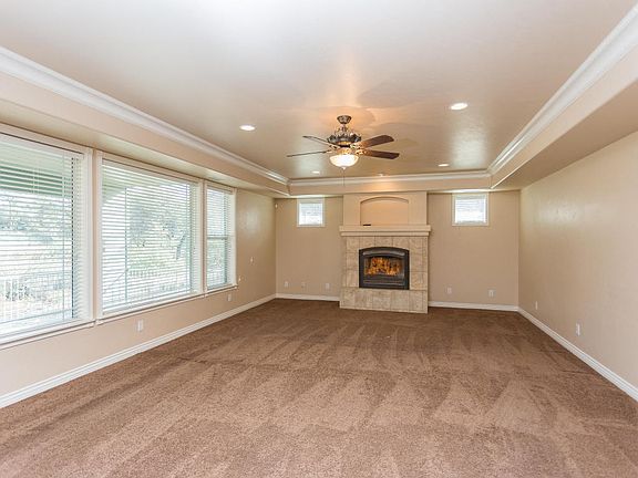 - Interior Features: Ceiling Fan(s), Fireplace-Gas, Kitchen Island, Live on One Level, Master On Main, Raised Ceilings 9+ft, Smoke Detector(s), Walk-In Closet(s), Wash/Dry Connection, Counters-Granite, Formal Dining Area, Kit/Din Combo, Central Vacuum, Security System, Utility Sink, Garden Tub, Jetted Tub, Counters-Solid Srfc, Garage Door Opener(s)