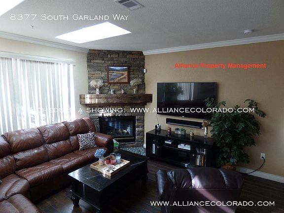 AVAILABLE FOR MOVE IN: Immediately. RENT: $2090. SECURITY DEPOSIT: 1 month rent - dependent on credit score. Due at lease signing. Updated, spacious and lovely townhome in Deer Creek Community, Ken Caryl neighborhood (off Hwy 470). Built in 2001; 1699 square foot unit. Luxury townhome faces west overlooking greenbelt. Living room features 2 skylights, oversize windows and tile surround, gas fireplace and laminate flooring. Main room floor plan offers a formal dining room which can be used as a family room/home office. Spacious eat-in kitchen with tile floor and breakfast bar for extra seating. West facing, large patio off kitchen nook - convenient for outdoor cooking. Kitchen has all appliances and abundance of cabinets and counter space. Spacious master suite on second floor level. Master bedroom has large walk-in closet with built-in shelving. 5-piece bath in master bedroom suite. Second bedroom has adjoining bathroom and large walk-on closet. Separate laundry room on main floor. Washer/dryer included. Updated lighting throughout. Air conditioning and in ground sprinkler system. HOA maintain exterior landscaping and provides snow removal. 2 oversized garage with extra storage. Community has access to pool and gym facilities. Owner pays HOA dues. Small dog considered, sorry no cats. Available now. Alliance Property Management, Inc.