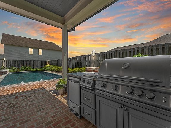 Stunning Home in Cypress Lakes Estates – Central School District! Located less than 3 miles from top-rated Central Schools, this beautiful one-owner home built by Patterson Construction Group sits on a spacious corner lot with a custom pool and fully equipped outdoor kitchen. The moment you arrive, you will notice the quality craftsmanship—from the inviting brick front porch with fireplace, columns, and shutters to the high-end finishes carried throughout the home. The open-concept living area features wood beam accents, a brick gas fireplace, high ceilings, and large windows that fill the space with natural light while offering serene views of the pool. The chef’s kitchen is a showstopper with a sizeable island, floor-to-ceiling cabinetry, granite countertops, stainless steel appliances, a gas range, and a connected dining area. French doors open to a brick-covered patio complete with an outdoor kitchen, including a Blaze grill, ice maker, and side burner—perfect for entertaining. Just beyond, enjoy your private in-ground pool with spa. This home also includes a two-car garage with dual access to both the pool and driveway, as well as a whole-house generator for peace of mind. Cypress Lakes Estates offers its own neighborhood playground and pavilion, and the location provides easy access to Baton Rouge via the Central Thruway. Don’t miss this opportunity to experience luxury, convenience, and style in Cypress Lakes Estates!