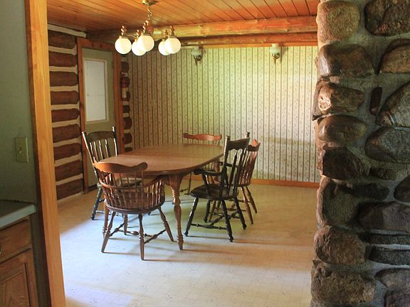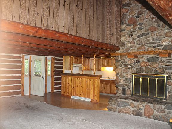 Custom built three bedroom log home with attached 24 x 40 garage. The main floor has a cathedral ceiling which features a field stone wood burning fireplace. Access from the main floor allows you to enjoy the outdoors on a treated wood deck overlooking the front yard with mature apple trees. Additional fireplace is located in the lower level family room, which is also a walk-out to patio and front yard. Basement also includes a 3/4 bath with laundry area. Two bedrooms on the main floor and a 13 X 14 lofted bedroom. Additionally there is a covered screened in porch which adds a seasonal living space to enjoy your morning coffee or evening meal. Newly installed LP high efficiency furnance, drilled well, and updated septic in 2000. Large oversized 40 x 100 garage perfect for storing recreational vehicles.